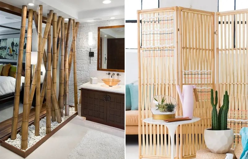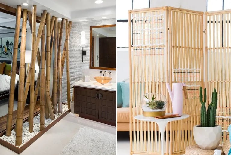 Sustentável por natureza, o bambu cresce rapidamente e é resistente. Ele é ideal para estruturas leves, luminárias e detalhes arquitetônicos.